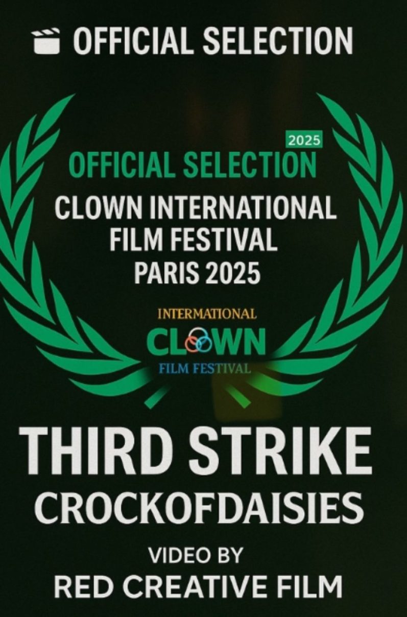We are Pleased to announce That Crock Of Daisies have been recognised by the Paris Independant Film Festival (Clown) in the short film (video) category for 'Third Strike' and have won the award for 'Best Original Music"
